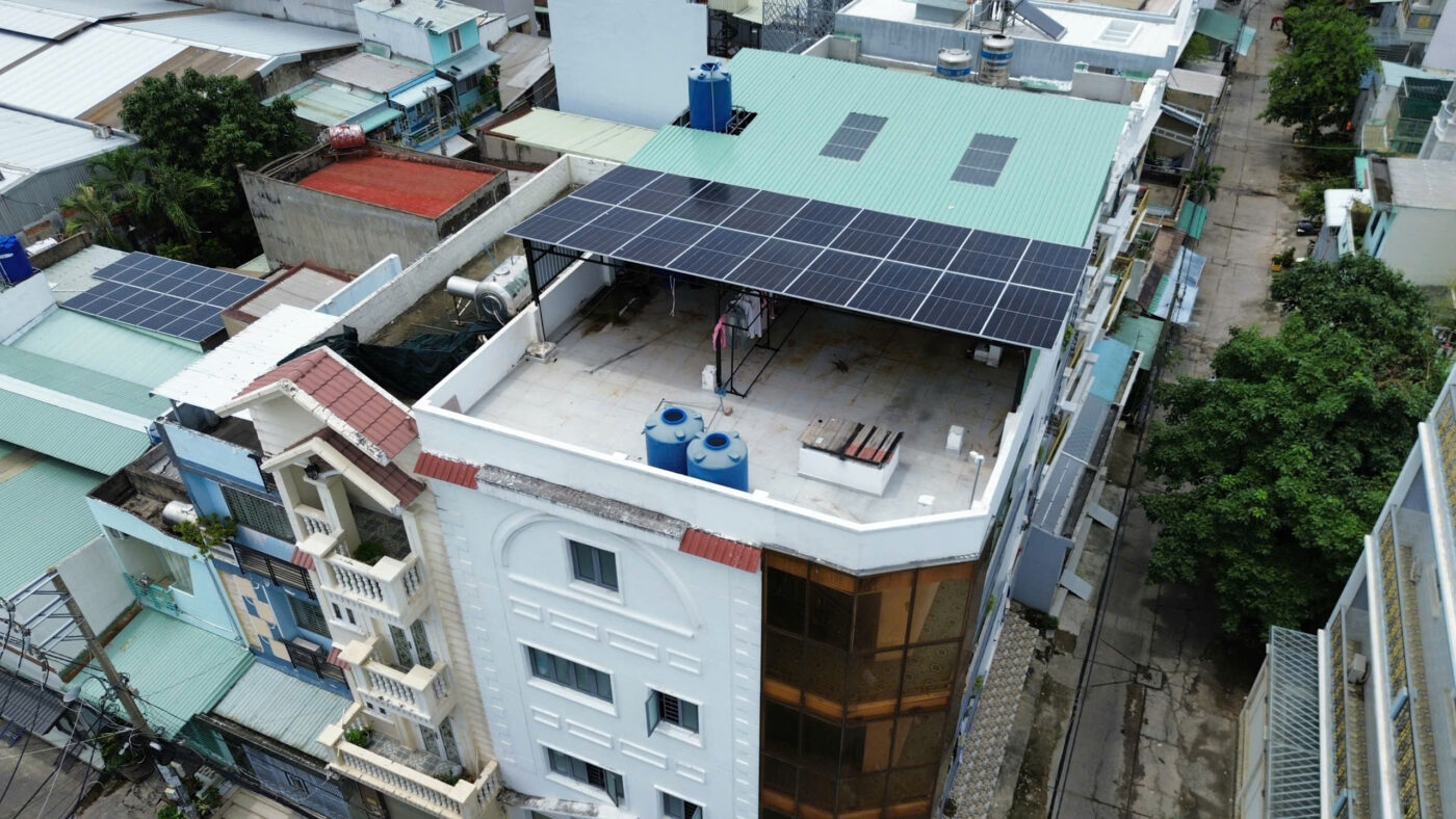 Tổng công suất hệ thống: gần 16,6 kWp, đủ cung cấp cho toàn bộ nhu cầu sử dụng của dãy trọ.